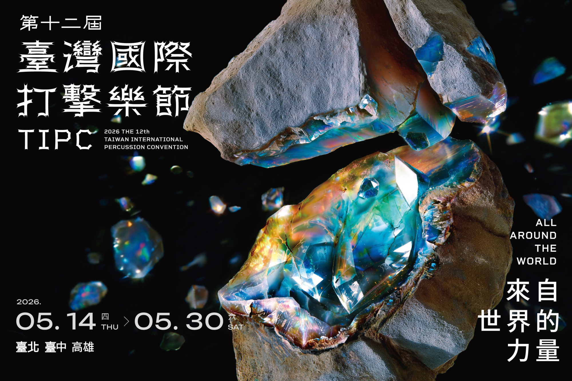 第十二屆臺灣國際打擊樂節以《來自世界的力量》為核心概念,除了擊樂社群中備受讚譽的演奏家-美國 Quey Percussion Duo擊樂二重奏;享譽國際的擊樂演奏家夫妻檔-美國華裔Pius Cheung張鈞量與日本Eriko Daimo大茂繪里子。這次更特別側重「跨文化視野」,邀請多組展現傳統音樂新風貌的特色演出:日本MATOI NO KAI 帶來振奮人心的和太鼓;韓國Groove&以前衛女力演繹傳統樂的嶄新面貌;希臘 Vangelis Karipis Trio樂團打造原創且令人印象深刻的聲響世界;當代最具代表性的印度陶罐演奏家 Giridhar Udupa;活躍於歐洲跨界藝術現場的伊朗手鼓演奏家 Naghib Shanbehzadeh。此外,廣受全球觀眾喜愛的荷蘭 Percossa 即將第五度來台參加打擊樂節,帶來絕無冷場的全新節目;融合都市節拍與自然律動的創新音樂團體日本MATSUMOTO ZOKU BAND也將首度來台展現手碟的獨特魅力;融合古巴傳統、爵士能量與現代音色的拉丁爵士新勢力古巴Dafnis Prieto Sí o Sí Quartet。臺灣地主隊朱宗慶打擊樂團安排多首融合傳統與現代的特色曲目,一展樂團的深厚實力;最後,在樂團40週年期間,再次邀集百位臺灣擊樂家共襄盛舉,百人木琴亦將磅礡再現!