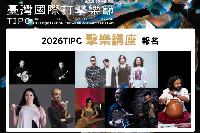 第12屆TIPC臺灣國際打擊樂節期間限定!特別規劃於國家音樂廳大廳舉辦四場擊樂講座,歡迎大家踴躍參加,與來自日本、希臘、印度、美國的擊樂大師來場零距離的深度互動!