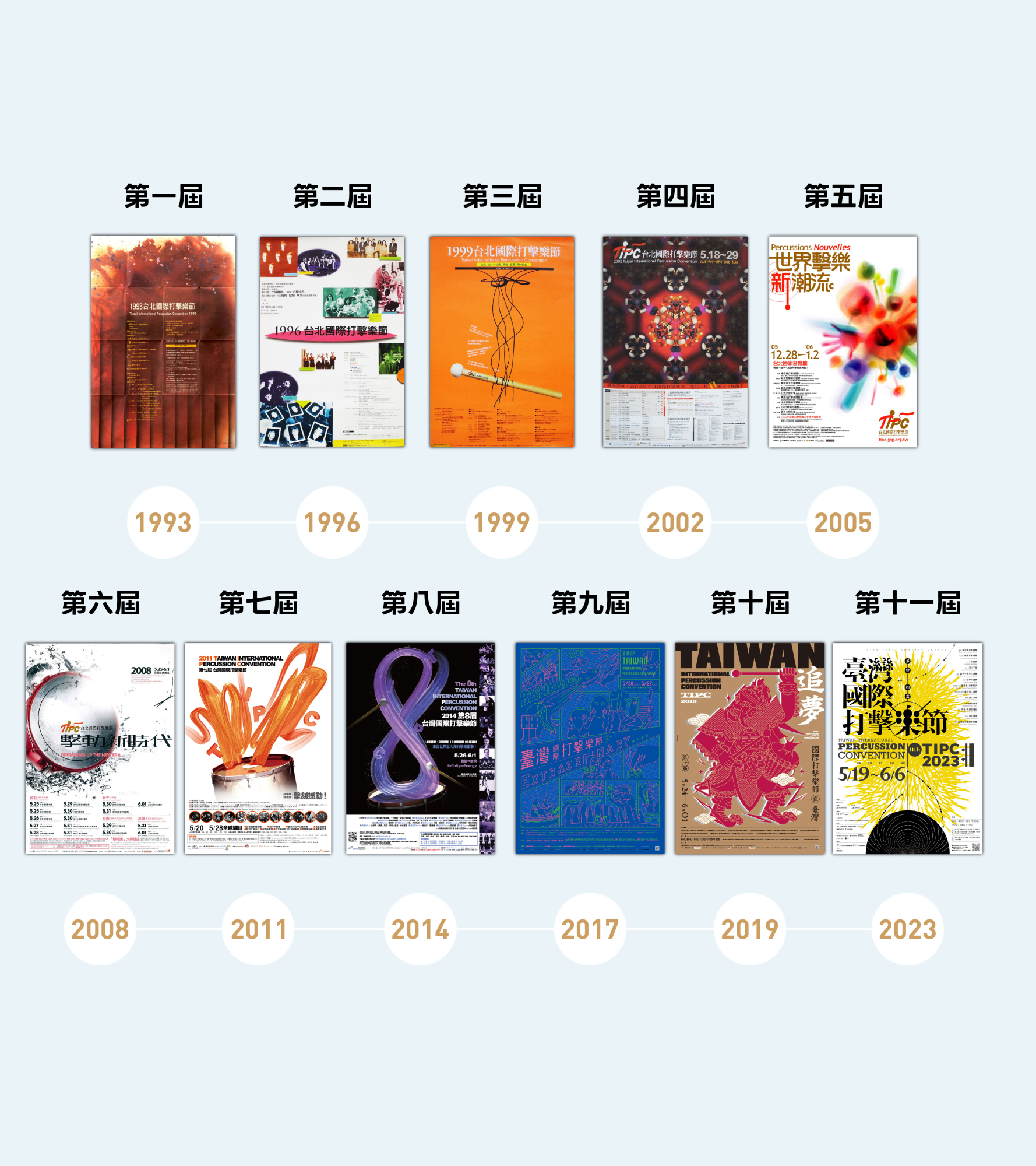 TIPC臺灣國際打擊樂節 自1993年首度舉辦以來,每三年舉行一次,累積來臺演出的團隊遍及五大洲、33個國家,累計168個樂團與個人參與,並發表79首臺灣作曲家的作品,至2026年將邁向第十二屆。打擊樂節始終秉持「臺灣走出去、世界走進來」的宗旨,三十多年來不僅引領世界潮流,更為臺灣注入推動擊樂發展的重要能量,也逐步成為推動世界打擊樂發展的重鎮平台。